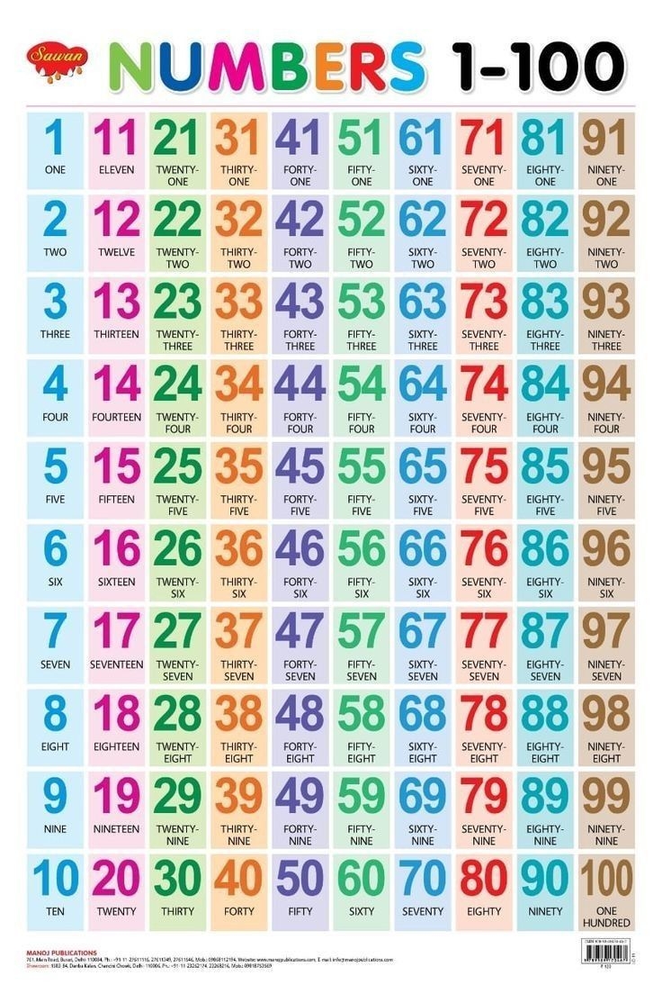 Printable Number Charts From 1 10 To 1 100