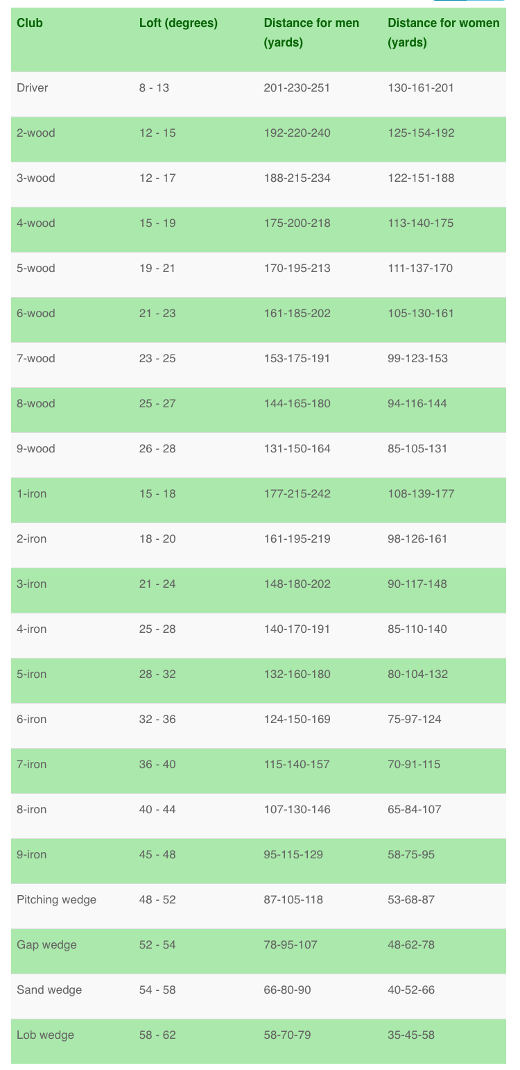 Free Printable Golf Club Distance Chart PDF Men Women Senior Printables Hub