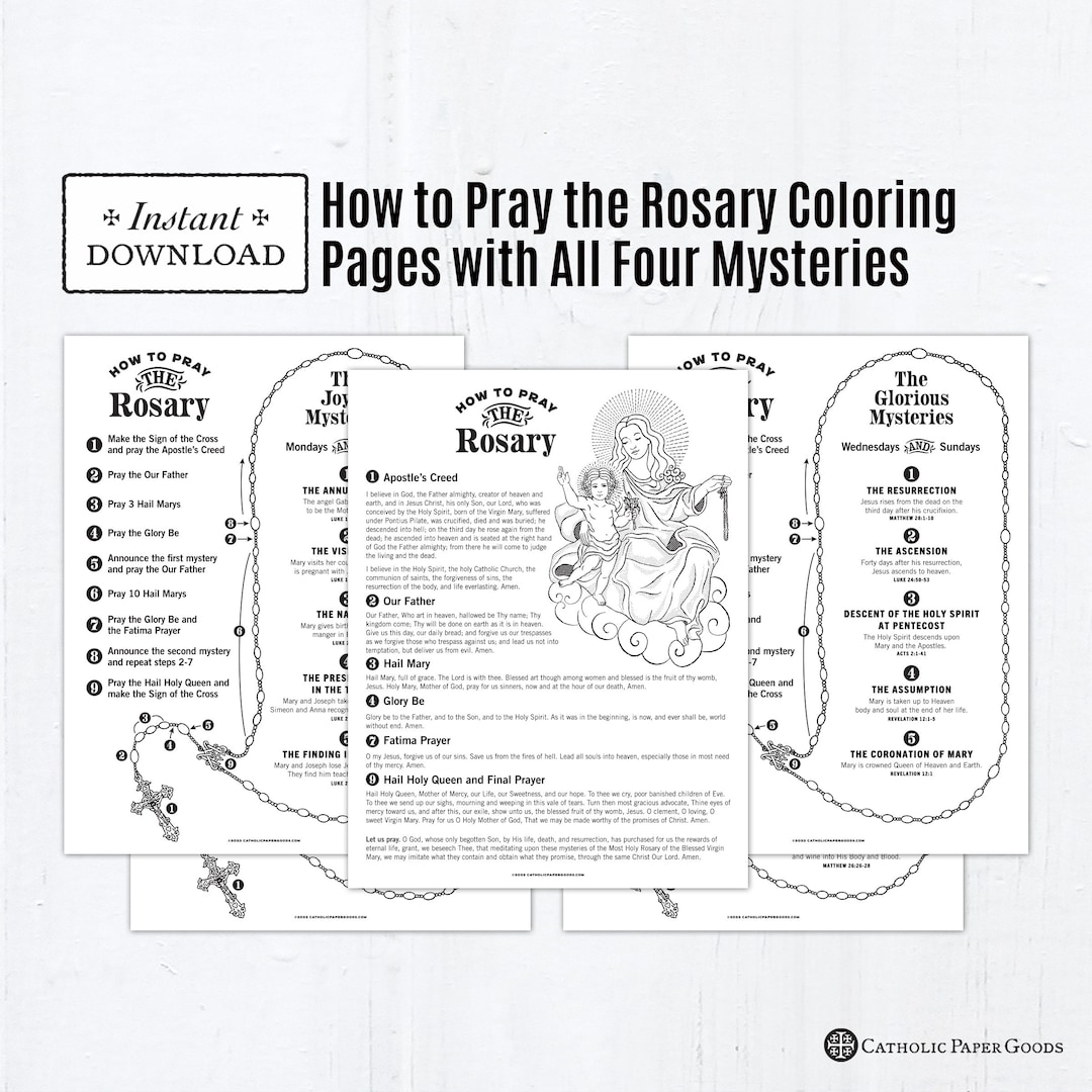 How To Pray The Rosary With Prayers And Mysteries Catholic Coloring Pages Catholic Prayers 5 Printable Coloring Pages PDF Kid Rosary Etsy M xico