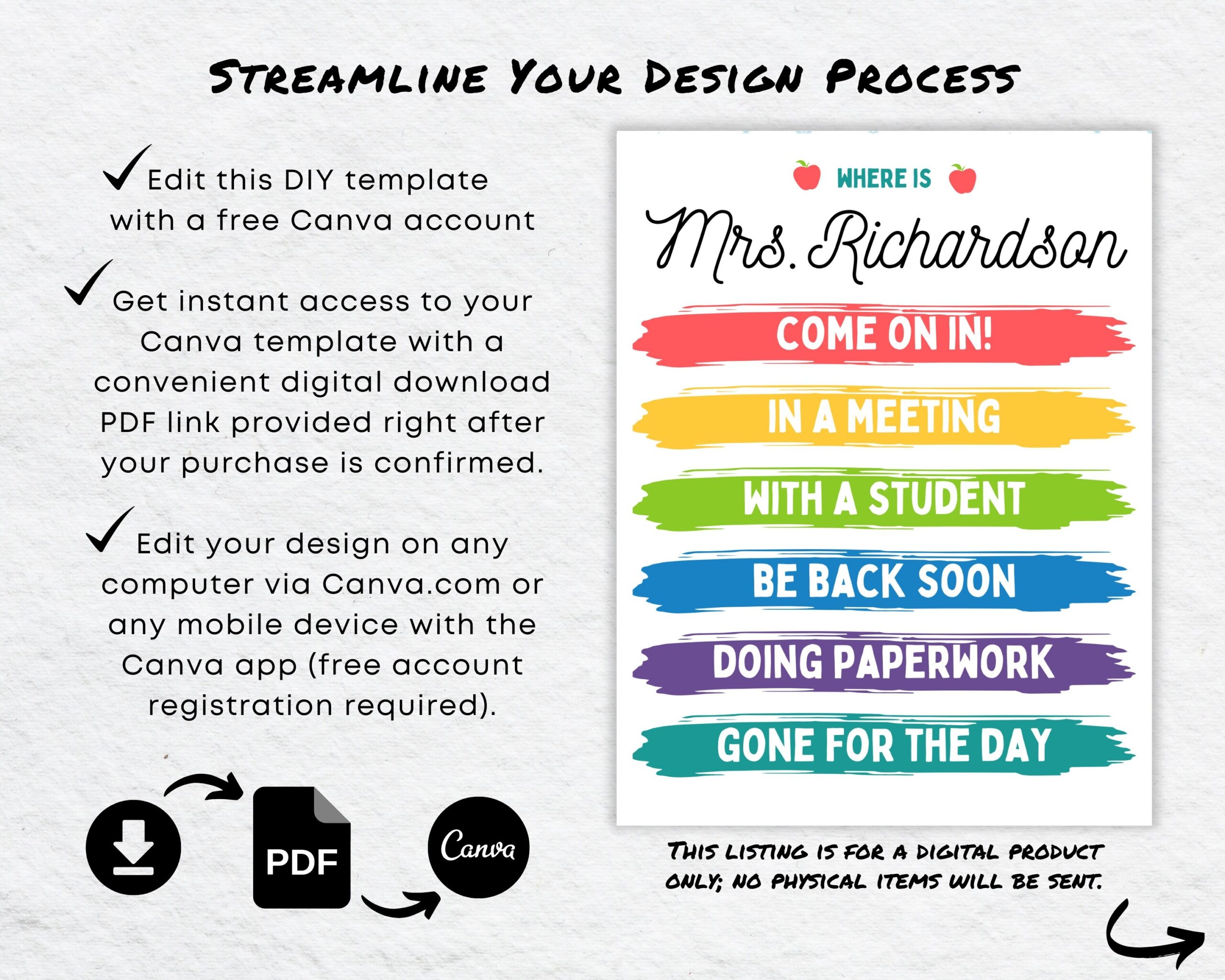 Editable Where Is The Teacher Sign Printable School Office Door Sign Canva Etsy