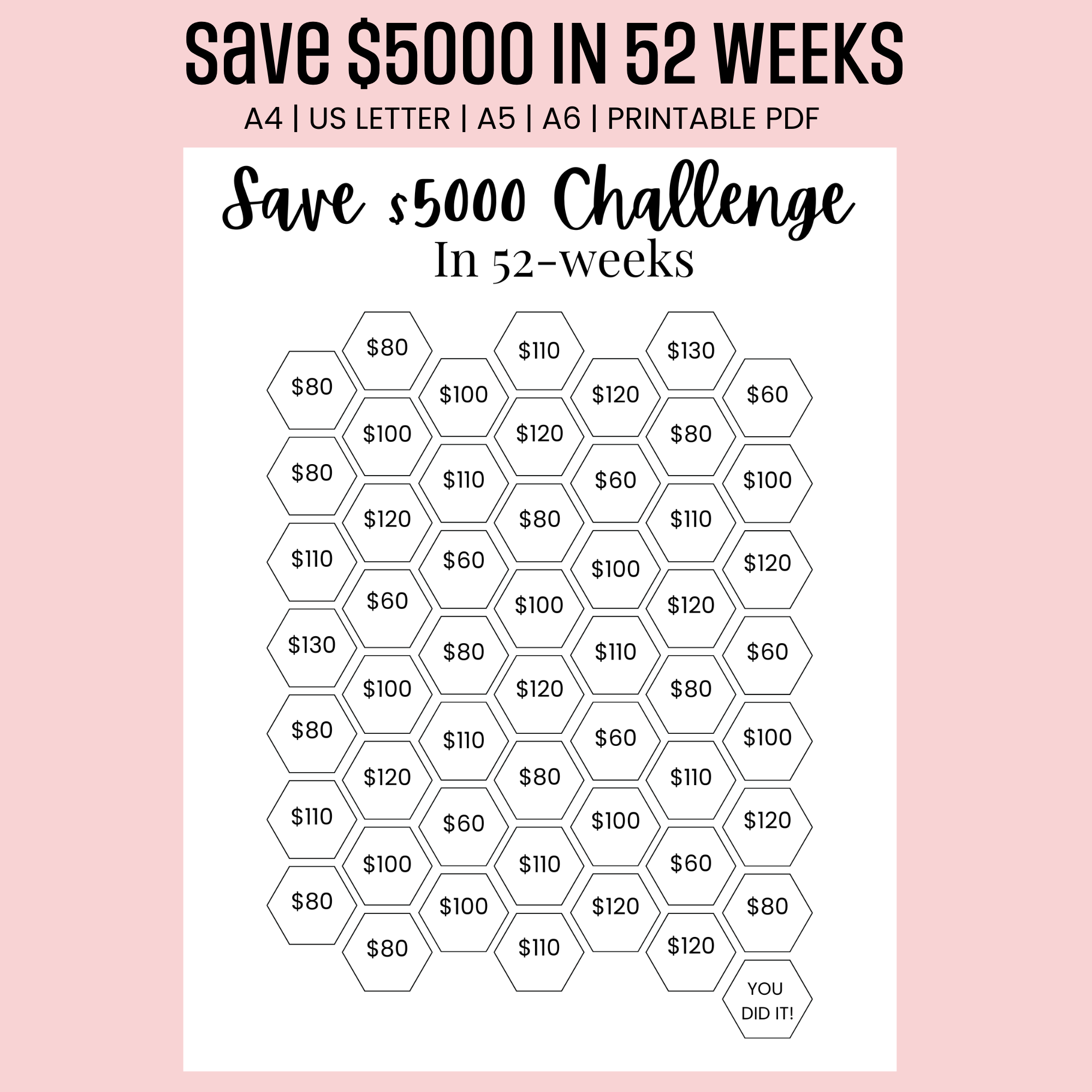 With this challenge, you start by saving just $1 in the first week, and then increase your savings by $1 each week. By the end of the 52 weeks, you will have saved $5000! And the best part is, you can track your progress with the free printable template available online.