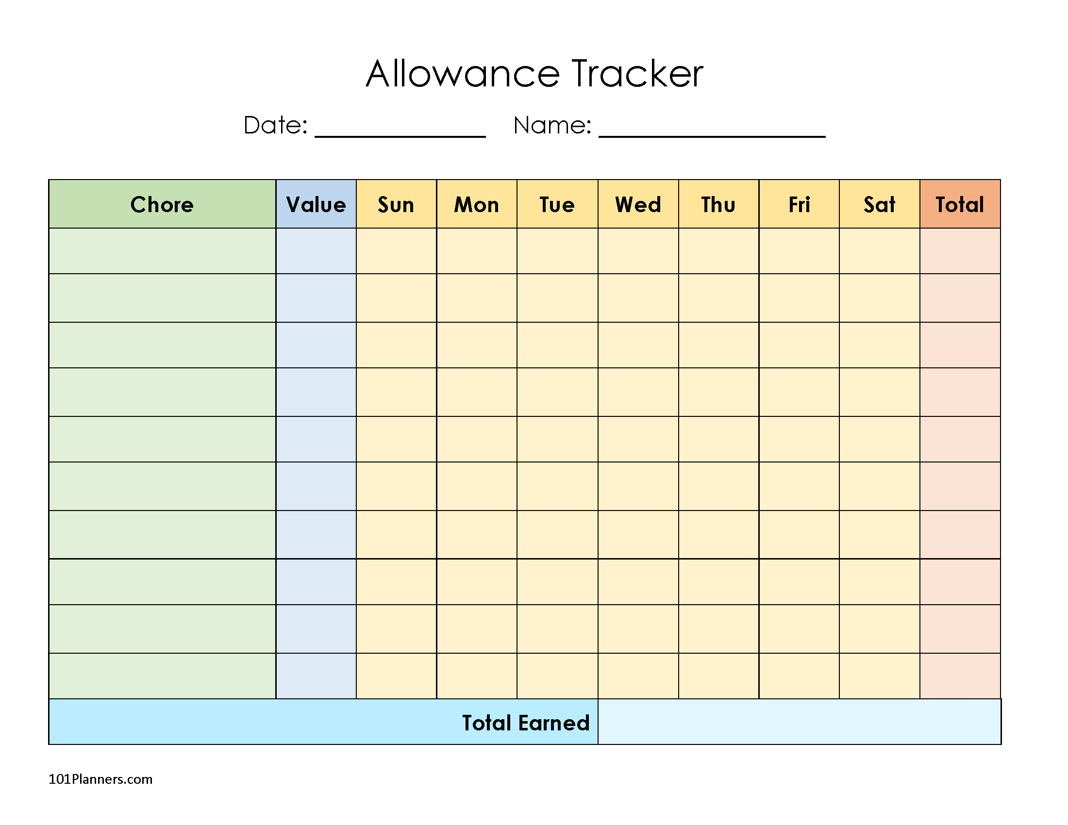 Free Printable Allowance Chore Chart
