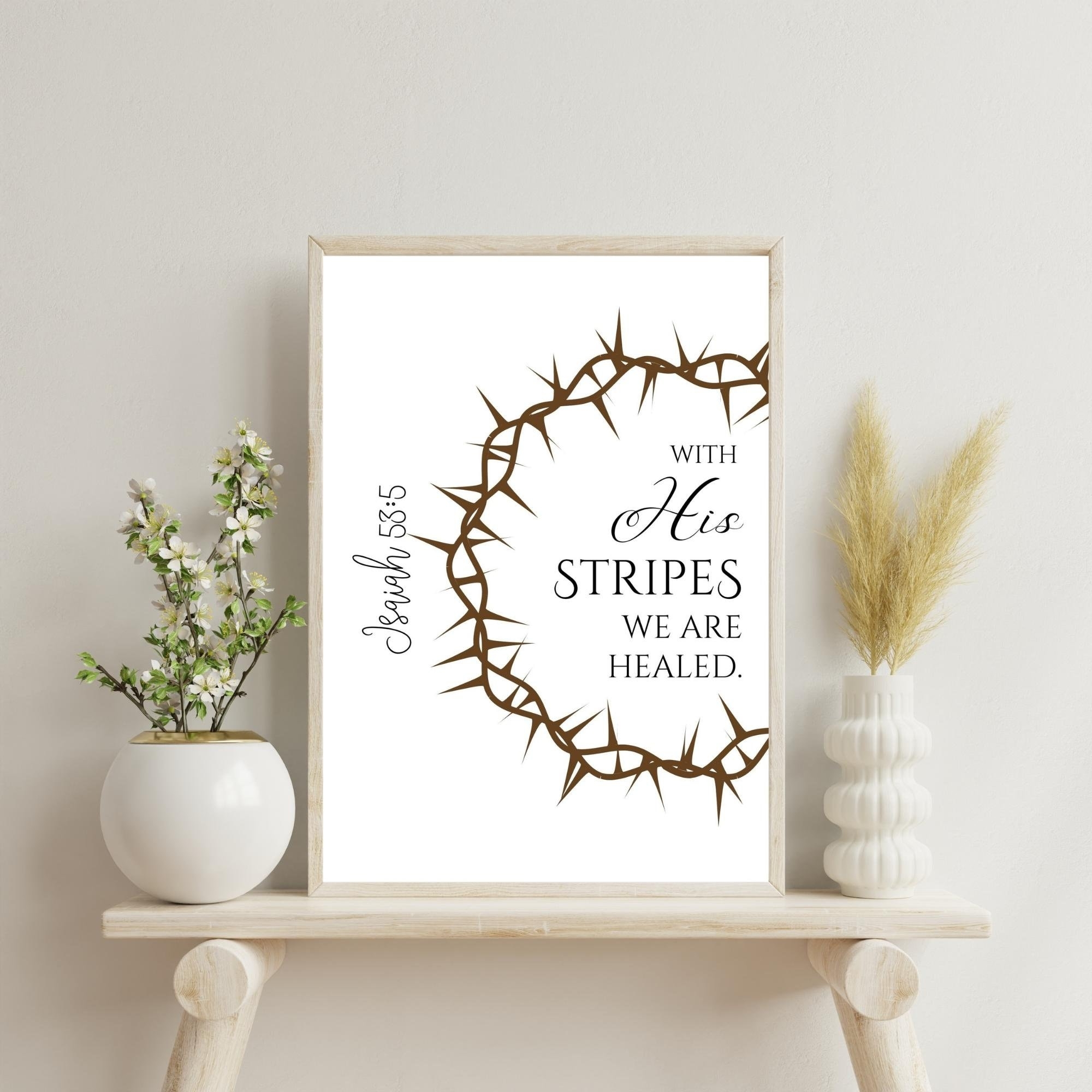 Isaiah 53 5 Print with His Stripes We Are Healed Print motivational Verse scripture Wall Art printable Wall Art digital Download Etsy