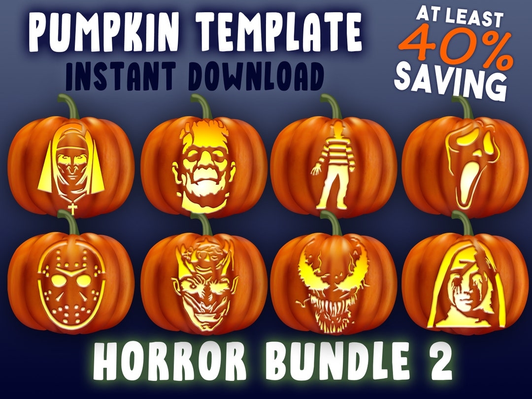 HORROR BUNDLE 2 Pumpkin Carving Stencil Halloween Template A4 Jack O Lantern Pattern The Nun Freddy Ghostface Venom Jason Night King AHS Etsy